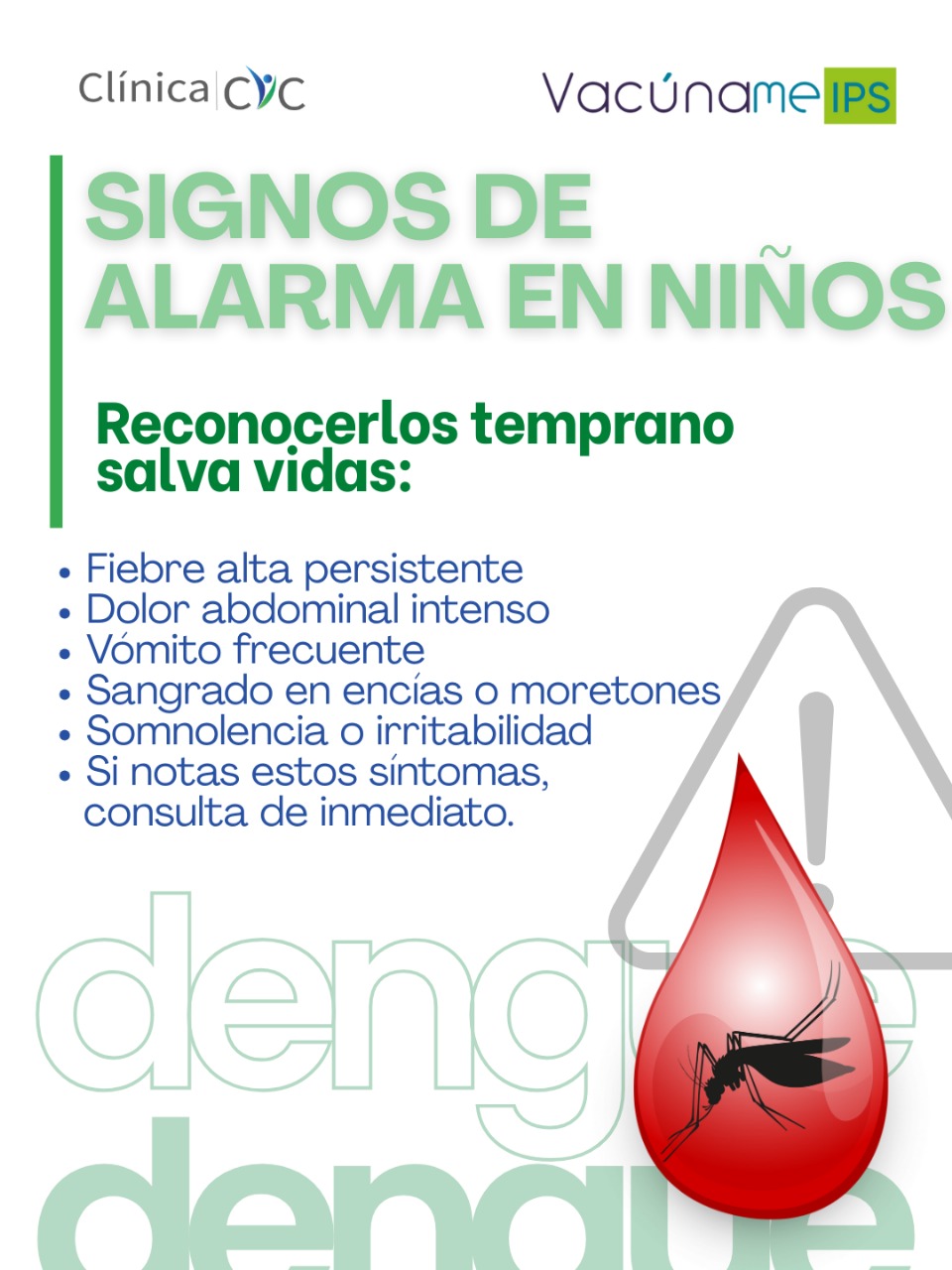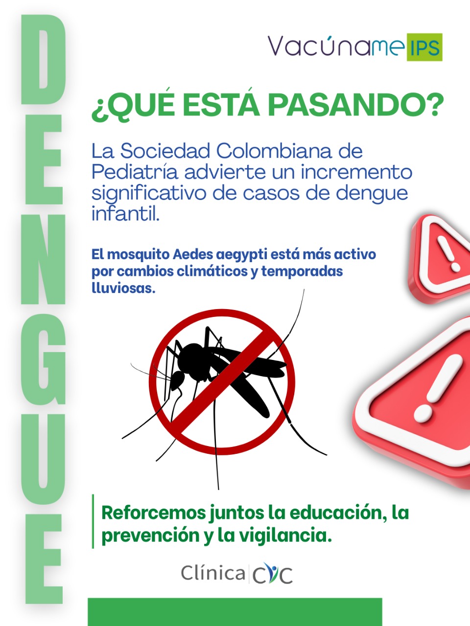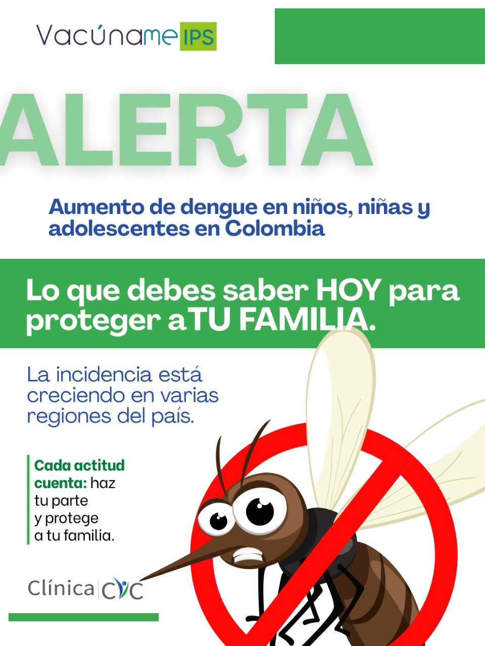 Alerta por el aumento de dengue en niños, niñas y adolescentes en Colombia. Conoce los signos de alarma, las medidas de prevención y las acciones clave para proteger a tu familia y actuar a tiempo.